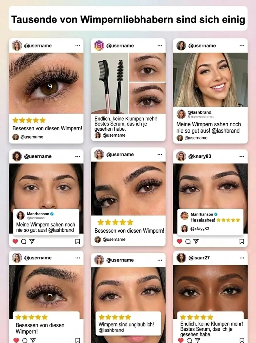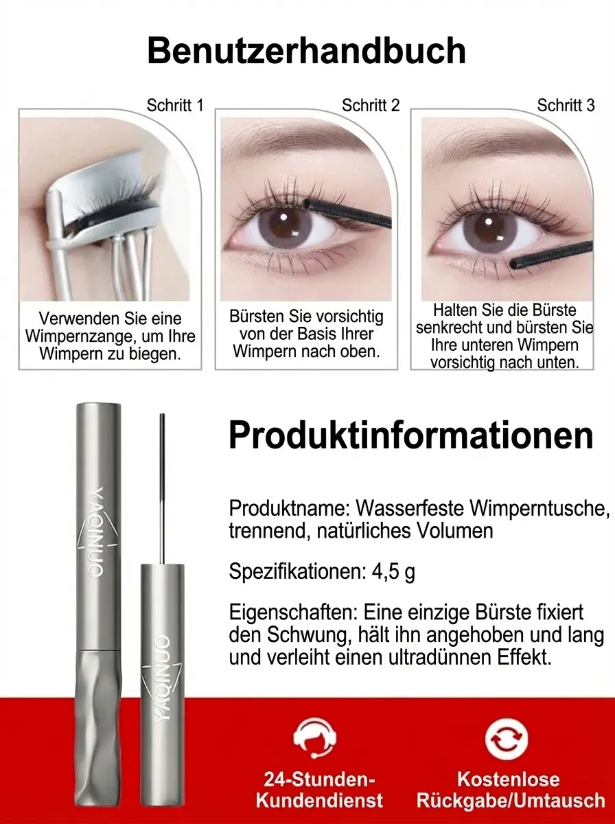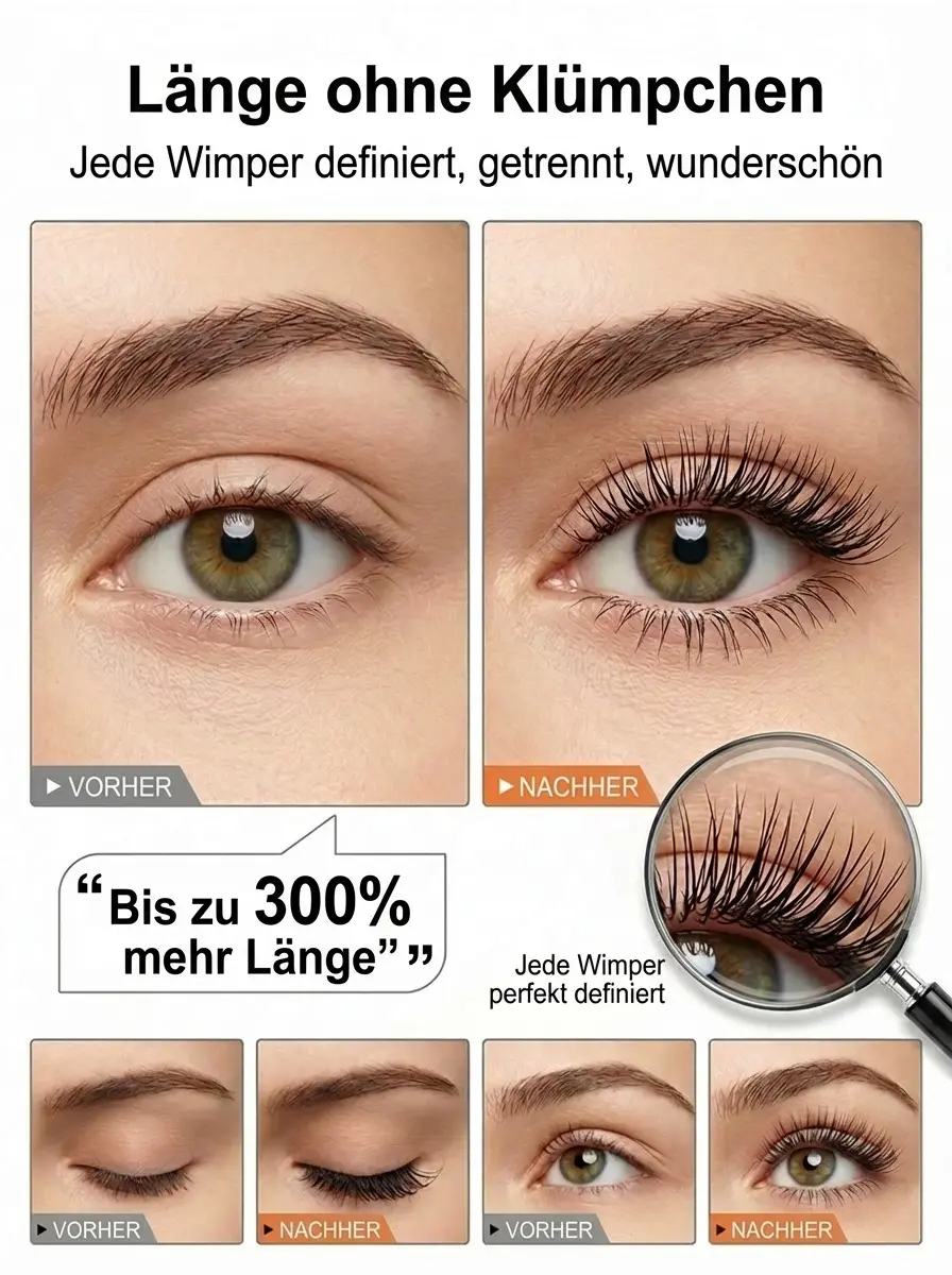 ✨ Sofort strahlende Augen: Erzielen Sie in nur 3 Sekunden lange, voluminöse und perfekt getrennte Wimpern, die Ihre Augen ganz natürlich größer wirken lassen. 🛡️ 14 Tage risikofrei testen: Sollten Sie mit dem Ergebnis nicht vollkommen zufrieden sein, erstatten wir Ihnen den vollen Kaufpreis zurück – ohne Wenn und Aber. 🔥 Warten Sie nicht: Nur noch 180 Stück auf Lager. Sobald dieser Vorrat aufgebraucht ist, gilt sofort wieder der ursprüngliche Preis.