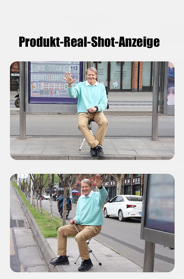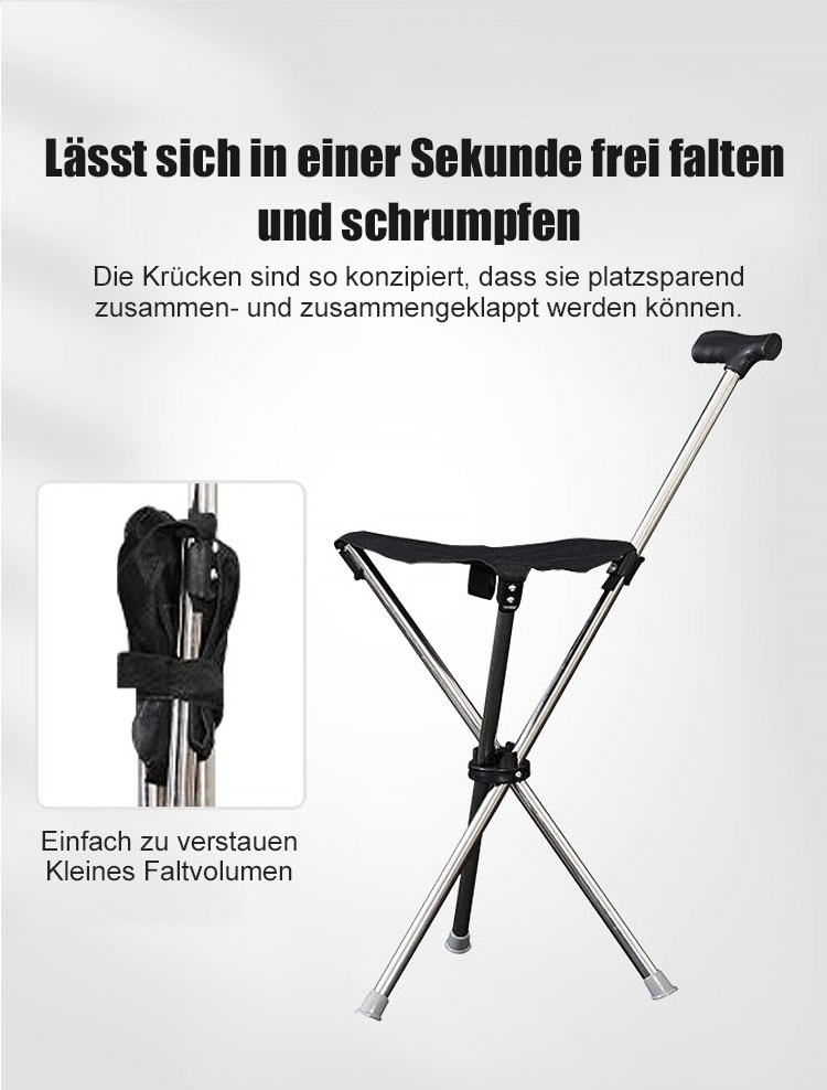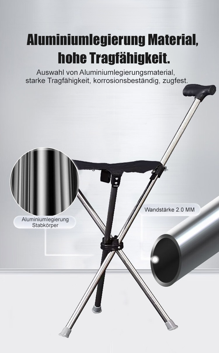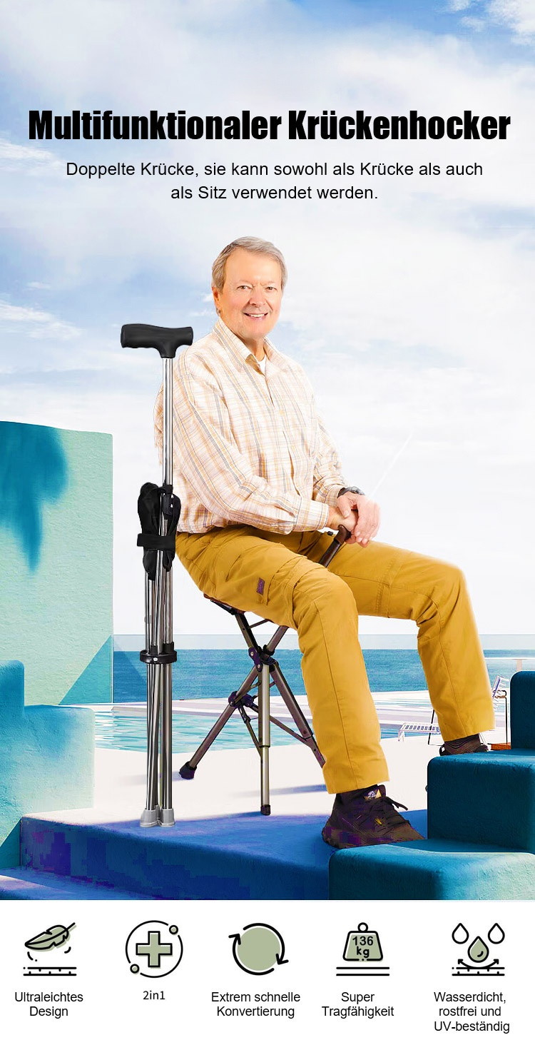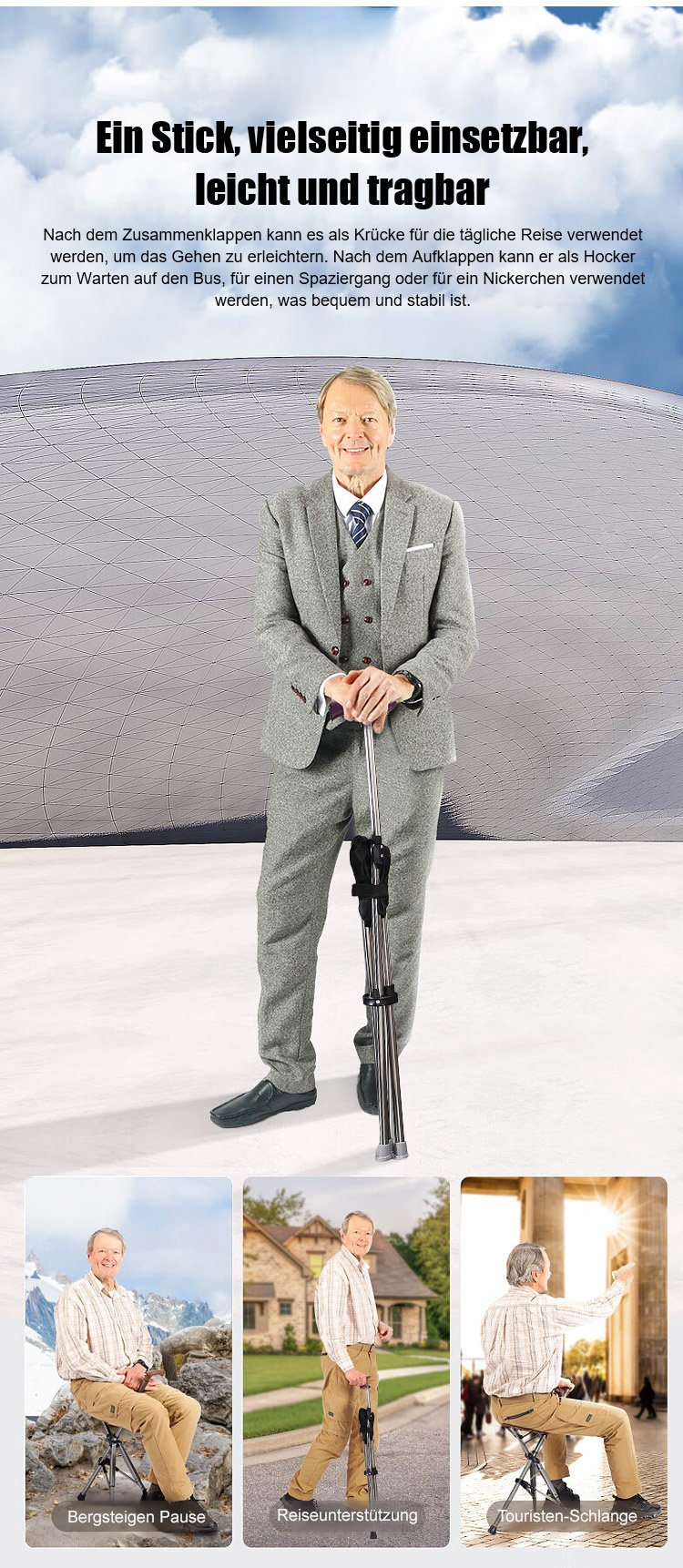 ✨Klappbarer Krückenstuhl für den Außenbereich✨Ein Gehstock, der in einer Sekunde zum Sitz wird – entspannen Sie jederzeit und überall